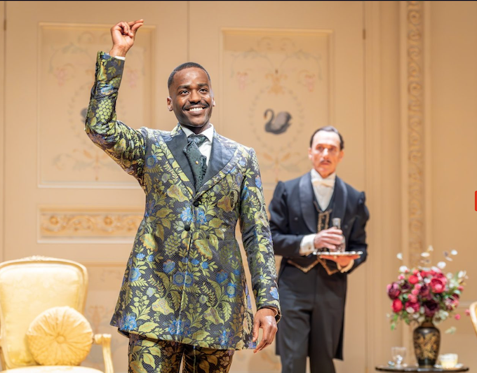 The big draw was Ncuti Gatwa, aka Dr Who. We haven’t seen him as Dr Who, but we have seen him as Jack Absolute in The Rivals and as Demetrius in A Midsummer Night’s Dream. He became famous on TV as the young gay character Eric in Sex Education on Netflix. He is an incredibly charismatic actor, with a smile that can light the biggest theatre.