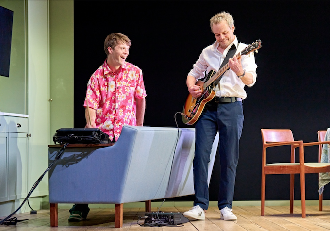 Harry is eighteen, played by Jasper Talbot, who just a year ago played a convincing young Mick Jagger in Redlands at Chichester. Harry is bullied at school, tries unsuccessfully to fit in. There is an older scene when she thinks he’s watching porn at age twelve and she tries to explain fears about penis size, hilariously with a huge pepper pot. After their dinner party, Harry returns at midnight (just after their sex scene) completely drunk after the teenage party. There is much discussion of maternal and paternal roles in parenting. Michael (great performance from Jamie Glover) is found lacking. Harry is a sixth former, about to take his A levels.