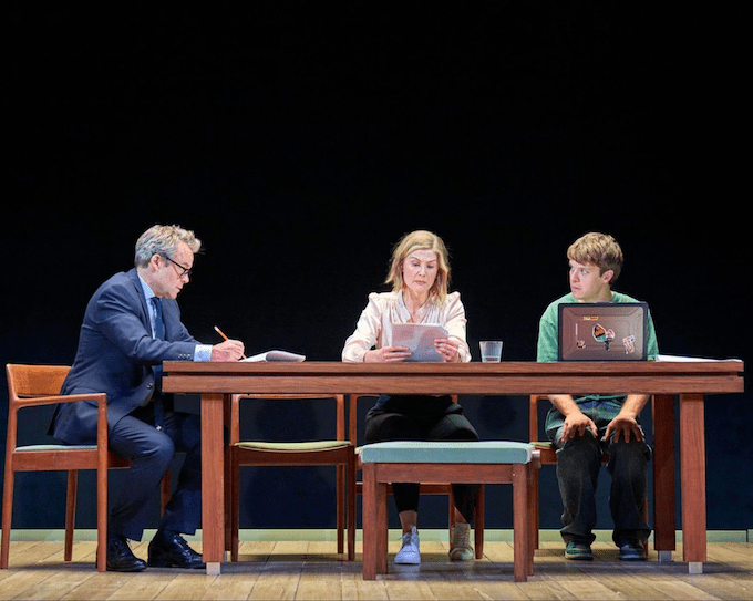 Rosamund Pike plays Jessica Parks, a judge married to a barrister. They have an 18 year old son. How do you describe this play? The set changes are seamless and unnoticeable with no breaks or jumps. They just happen. Court room, living room, forest.