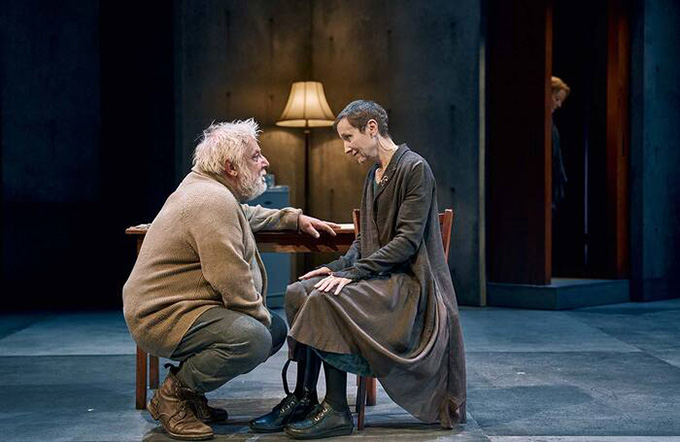 The story? There isn’t a lot. Borkman (Simon Russell-Beale) was a miner’s son who became a banker, lost everyone’s money and did a five year prison sentence for fraud. He was released eight years earlier. Gunhild, (Clare Higgins) his wife, won’t speak to him, his only visitor is his old accountant, Wilhelm (Michael Simkins).