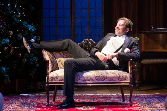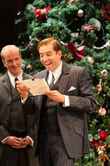 The two great comedy scenes in the play are Benedick (Edward Bennett) overhearing the others saying that Beatrice (Michelle Terry) loves him, then Beatrice being tricked by Hero and Ursula, saying Benedick loves her. The Benedick scene was done in the drawing room, first with him behind the curtains, then with the huge Christmas tree. No plot spoilers but the comic business was flat out hilarious … shocking, you might say, sparking. Edward Bennett is a comedy actor in the Rik Mayall / Rowan Atkinson league.