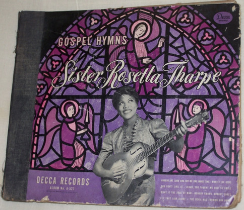 (Sorry, but I also run a record collecting site, which is why I can nitpick!) 1946? Yes, there were albums, but they were boxed collections of 78 rpm shellac records, NOT LPs. The 12″ 33 rpm LP arrived in 1948. Yes, box sets were illustrated from 1939 on, but you’d say box, not cover. In fact George Brant is only out by a year. Sister Rosetta Tharpe’s first box set (4 x shellac 78s) appeared in 1947, and her face was on the cover.