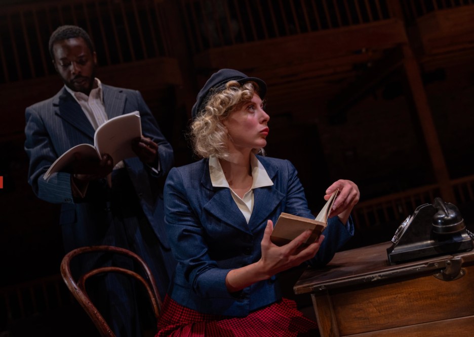In the second half, there was a dizzying parade of named people: Hal Prince, Victor Spinetti, Lionel Bart, Shelagh Delaney, Jean Newlove, Avis Bunnage, Barbara Windsor, two other actresses named Barbara, Cedric Price, Frank Norman, Murray Melvin. Some of them get very little little stage time to establish themselves, though every performance in these roles is strong … and nearly all are played by the women. Tam Williams plays the actor Murray Melvin, who is interviewed with Sam Kenyon in the programme. Murray’s tales of working with Joan Littlewood inspired the play. He was in the original A Taste of Honey along with Avis Bunnage.
