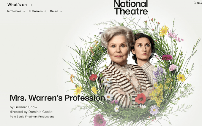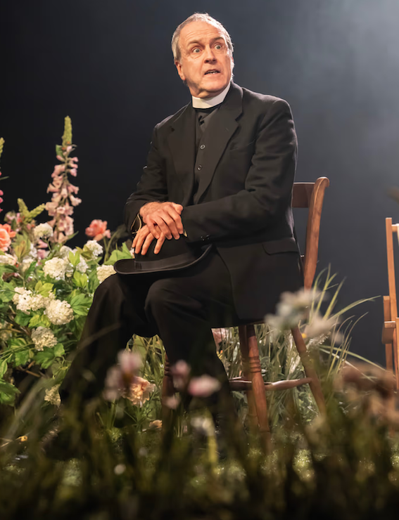 There are detailed notes on Shaw, and his long preface to the play in the review of Mrs Warren’s Profession – Bath 2022. That starred Caroline Quentin and Rose Quentin playing mother and daughter. I assume it inspired another mother & daughter version here with Imelda Staunton and Betsy Carter. The parent and child pairing was seen with Lia Williams and Joshua James in The Vortex at Chichester in 2023. In 2002, Vanessa Redgrave and Joely Richardson were both in Lady Windermere’s Fan, which we saw. It is all in the family. Imelda Staunton and Jim Carter (Mr Carson, the butler in Downton Abbey) are married, and Betsy is their daughter. We could see a strong resemblance to her dad. Kevin Doyle, who plays the vicar in this is the footman, Mr Moseley in Downton Abbey. So Imelda Staunton, Jim Carter and Kevin Doyle are all in the Downton Abbey film versions.