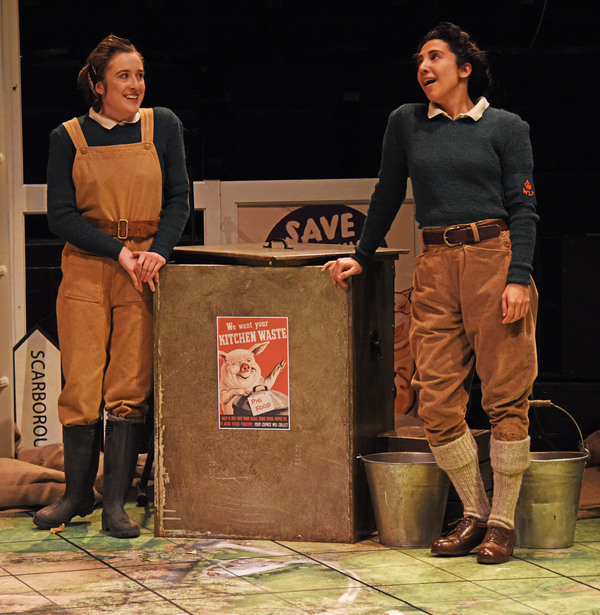 The play relies on Benedick and Beatrice and they were the central strength. Robin Simpson with his regulation hair cut and moustache looked every inch the RAF man, and took the overhearing scene and the later scenes with Beatrice brilliantly. Isobel Middleton, in unglamorous dungarees and gum boots was a perfect foil. Both the “overhearing” scenes had good business.We both noted that bits of Benedick’s business, scrabbling along the front row to hide, and Beatrice’s business, hiding in the pig swill skip with unfortunate results, both appeared in the RSC’s Merry Wives of Windsor in 2018.