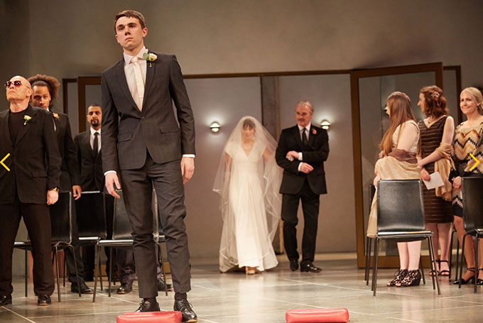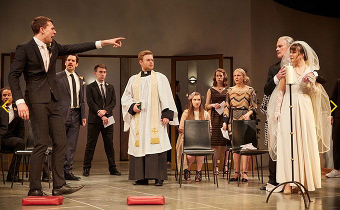 Claudio (Calum Lynch) accuses Hero (Kate Lamb). Priest centre(Calan McCarthy)