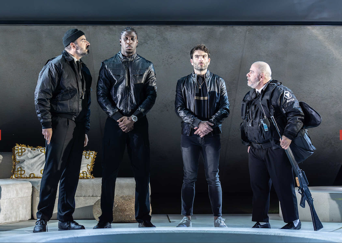 The Watch are now security guards, with Verges and Dogberry doing a classic ‘little and large’ act. I was surprised when reviews of the recent Jamie Lloyd production with Tom Hiddleston applauded the removal of the Watch, which many apparently find tedious every time. I don’t and it doesn’t have to be irritating, as long as it focuses on visual humour over wordplay … and cuts a lot of the wordplay. They’re good here, with great background acting later from Dogberry.