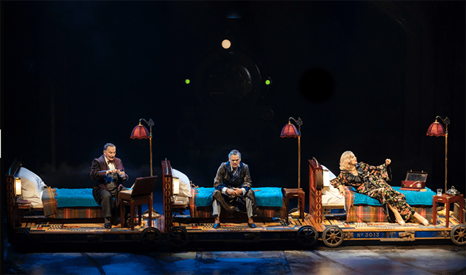 The set design by Robert Jones is so important. I had wondered how it was possible to do this play on stage at all given it takes place in the narrow confines of a train that gets stuck in a snowdrift in 1930s Yugoslavia. It works. You wonder who the ensemble are, but they play waiters, porters and scene shifters. It’s a triumph of stage management, with everything flowing so smoothly in transitions.