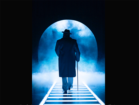We can’t have the usual flashbacks, but as he describes an event, all the characters stand, freeze and the one concerned repeats the ‘flashback’ line, and each is pinpointed by a spotlight as they do. As an ex-limelight operator, I know about pinspots. I marvelled at how they hit the actor in the circle with the stage slowly revolving all the time. Is it a computer programme? It uses fixed lights on the ceiling, but I’d assume there has to be a degree of human intervention. Mark Henderson, the lighting designer, deserves an award.
