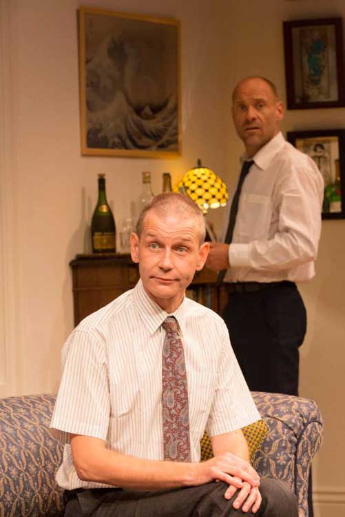 It’s an odd comedy, starting in scene one with Guy’s flat warming, moving a couple of years to the party after Reg’s funeral, then ending in the flat after Guy’s funeral – Guy had just the one careless encounter in Lanzarote, though early on they remark he’s so careful that he ”masturbates in Marigolds.” There were an awful lot of in-jokes and a lot of stuff went right past us and got lots of knowing laughs.