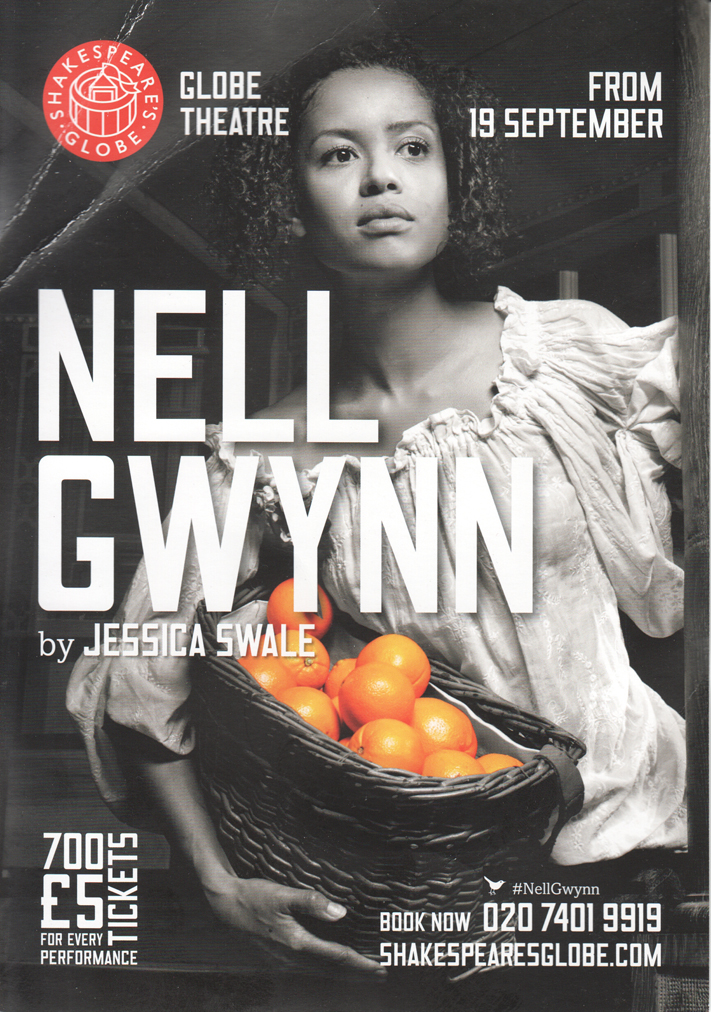 So here we are in 2015 in a faithful reproduction of an Elizabethan / Jacobean / Caroline public theatre, watching a brand new play about Nell Gwynn, who was born in either 1650 (as she claimed) or 1642 (which some think more likely). She was an orange seller, born in a brothel, then one of the first actresses on the English stage, and the mistress of King Charles II and mother of two of his children. His final words were ‘Let not poor Nelly starve!’