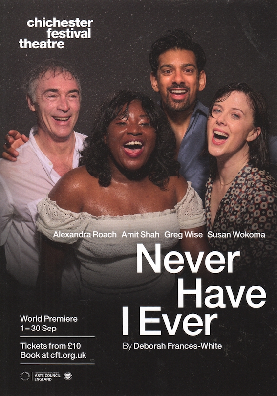 I didn’t know it having led a sheltered life, but Googling finds ‘teenvogue’ which tells me it’s a ‘slumber party classic.’ OK. Someone says something they have not done and others have to own up if they have. On ‘teen vogue’ it’s things like ‘Never have I ever read a book in a day.’ This is an alcohol version, so maybe they have to drink when they own up. Dunno. Whatever, the questions here are mainly sexual, so it leads to revelations of infidelity that shake their entire relationship. No plot spoilers … that much is in the advertising flier.