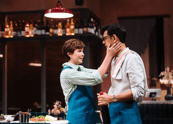 The set is the Masada restaurant, a boutique restaurant run by Kas (Amit Shah) and Jacq (Alex Roach). It starts off with Jacq finishing the salad and dancing, and the spoon lick was an instant laugh BUT she should have double-dipped it, or someone else should have licked it unknowingly later. Missed opportunity.