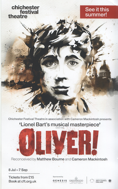 The Chichester summer musical is one of the theatrical events of the year. It usually goes on to London, and given Cameron Mackintosh’s involvement this time, I’m sure it will. I bet it costs a lot more per ticket then. Every year, I’m stretching for superlatives. Five star is the default setting. Oliver! this year got an instant standing ovation, and just about the longest one too. The cast had to break it. It could have gone on another five minutes. Yes, it was that good. It was also completely full, packed. Simon Lipkin (as Fagin) got a very good joke out of the full theatre, full even to the cheapest top extreme side seats in the balcony. The restaurant was fully booked before and after. We couldn’t get a reservation.