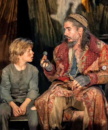 Fagin is the discussion. The character was an anti-Semitic stereotype in Dickens’ novel, though that changed in the musical to add humour, and both Lionel Bart and Ron Moody were Jewish. The music in Fagin’s songs have a Yiddish lilt and tempo. That’s a positive. I’ve danced to Hava Nagila at weddings myself. Simon Lipkin channels Johnny Depp in Pirates of The Caribbean with costume to fit. His Fagin is eminently likeable and breaks the fourth wall to relate directly to the audience a couple of times. That’s how you make an apparent baddie lovable. We don’t get a heavy accent, if we get any accent at all. He is perfect at the magician slight of hand tricks. I noted reviewers comments that he ‘improvised’ in Reviewing The Situation. Bollocks. That’s meticulously rehearsed and timed stuff that appears to be improvisation. I say this as someone who has watched comedians twice a night six days a week for a summer season. Appearing to be improvising is an ultimate skill. You can’t improvise a song with a thirteen piece orchestra, though as noted above, the conductor had to watch him. Forever after, Simon Lipkin will be my mental image of Fagin, eclipsing all others.