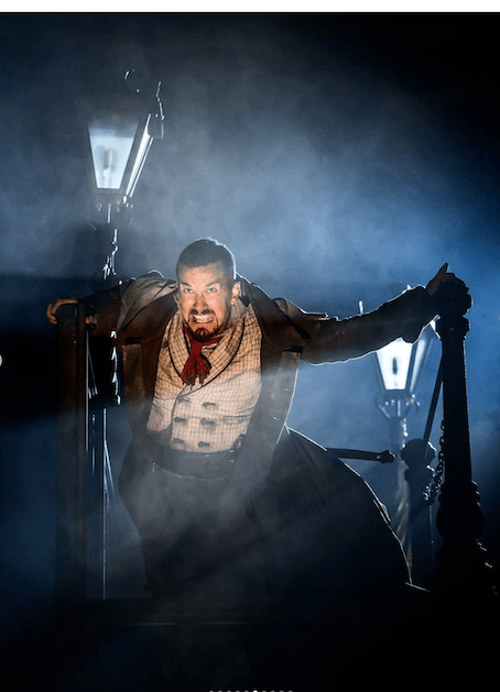 Then we have Bill Sikes, the burglar, and Nancy, his girlfriend, the tart with a heart of gold. Aaron Sidwell and Shanay Holmes. She is a magnificent lead singer. Bill Sykes was genuinely scary in his violence. It has to be that violent. It’s the story! A reviewer sniffed that he was booed in the curtain call as if it were a pantomime. This is the greatest accolade a stage villain can have. Aaron Sidwell knew it- a huge grin greeted the boos.