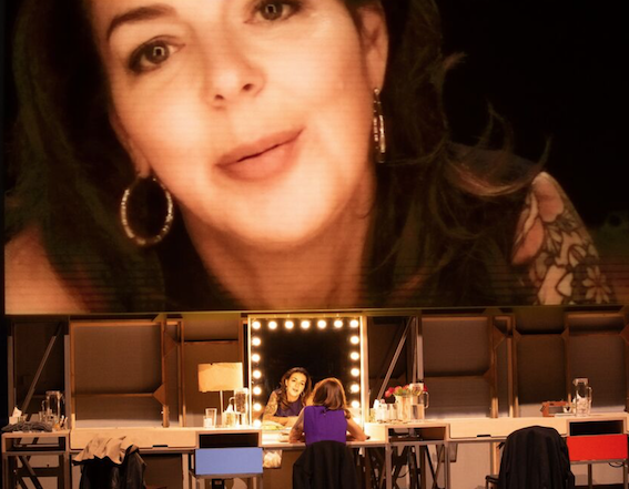 Ivo Van Hove likes adapting films as ‘Conceived and directed by …’. This is adapted from a John Cassavetes ‘art horror’ film from 1977. The film was a total flop and did not get a proper US release until 1991, when it acquired an art house reputation in Europe. It centres on an actress at a point in her career where age is affecting her roles, a casting problem that afflicted women far more than men in 1977. Less so nowadays as so many female stars have aged gracefully into roles written for maturity. As my male actor cousin said ruefully to me once, “I’m at the point where I’m too old for romantic leads and too young for character parts.’ Myrtle, the actress of a certain age is flanked by the 17 year old fan, “youth”, and the old playwright, “age”. I didn’t see Nicola Hughes as the playwright as ‘old’ though. She is 65 in the film.