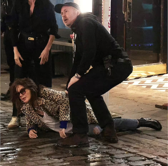 She performs brilliantly. The fall looks totally real and is on hard wet dirty pavement – and it was raining heavily outside when we saw it. The same idea was used in Sunset Boulevard at the Savoy last year. That was better because the actor came through the audience with the Steadicam operator to prove it was real. Here she appeared on stage. Admittedly it is easier to do in reality at the Savoy, set off the street, than at the Gielgud theatre on the much busier Shaftesbury Avenue. Both owe a debt to the film Bird Man. When we switch to the Broadway actual opening night we get film of the audience arriving projected. That shifted our attention too because we wondered if it was really this night and were looking to see if we were there. We weren’t.