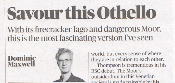 The acting is powerful all round. Juliet Rylance has an incredible singing voice. Musically, there is excellent unaccompanied chant. As in every production, Iago is the star role, Will Keen here. However good Othello is, and John Douglas Thompson is very good indeed in a conventional way, Iago remains the best part. I liked the quirky way he found the lines, but then my companion disliked it intensely.