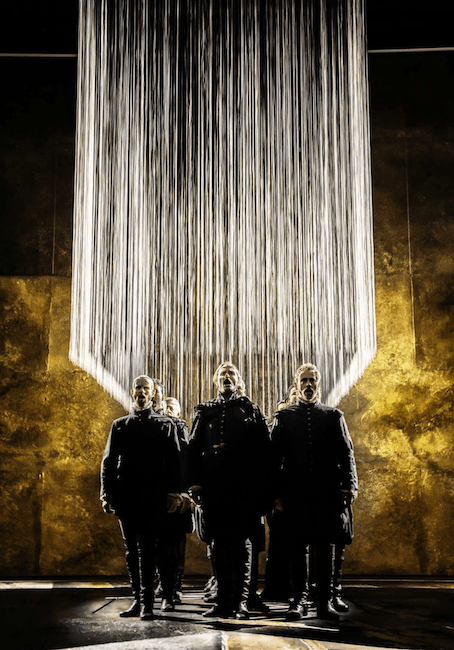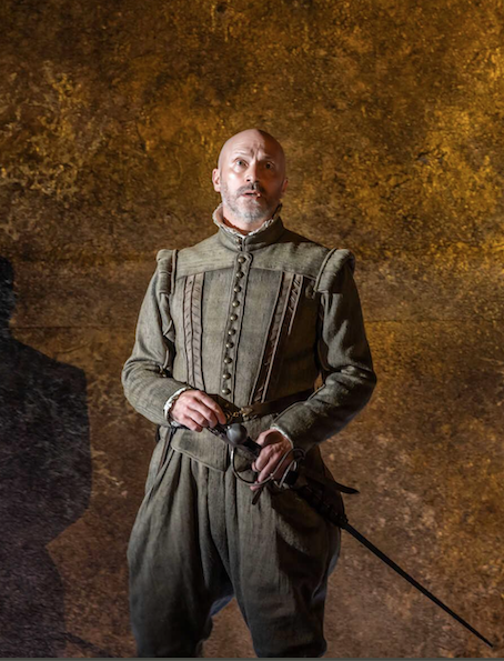 It’s minimalist. It’s as if the director is afraid of directing any action or interaction. The carousing scene where Cassio is made to get drunk and into a fight is a murky flutter behind hanging wires at the inner rear stage. No drinking is seen. Basically it’s all report. This is usually a major production scene.