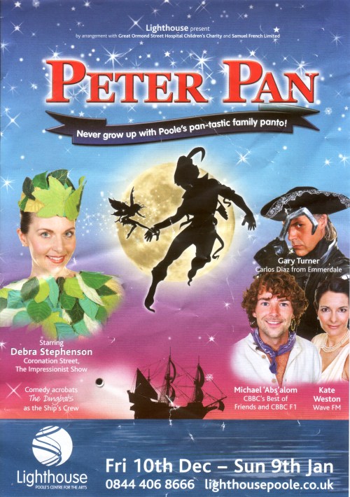 (This bit is not about Peter Pan.) Forget the Bournemouth Pavilion panto. The kids usually go with their schools. It’s costume-heavy, soap star dominated. This year, the kids saw the Bournemouth panto in a near-empty Pavilion. The adults said the cast barely bothered to go through the motions for the matinee and it was the weakest panto they’ve ever seen. Par for the course for Bournemouth in my experience, then.