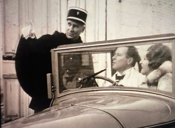 They use sepia jerky (so faux silent film) link pieces at the start and between acts, with added comedy … arriving at the hotel, getting lost on the way from Deauville to Paris, asking a policeman. Appropriate ‘silent film’ music accompanies. Hmm. A 1920s mood. The play dates from 1930 and Noël Coward was always up to date. Jerky film dates back to hand cranking and then projection years later at 24 frames per second instead of 16 frames. Noël would have expected up to date filming.