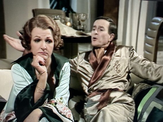 A lavish BBC Christmas week production from 1976. They were moving away from ‘TV plays’ where they filmed it on one set, and adding more film elements. The DVD is sharp, bright and clear, even though it’s in 4:3 TV shape. See the previous reviews of Private Lives (link to 2021 production) for more on the play and our experiences of it. As I mention, there are only two other reviews (2021, 2023) on this site, though we saw it many times before starting reviews here in 2012. It’s relaxed and comfortable viewing for us. Not a line holds a surprise for us, so we can focus on delivery. Karen’s done Sibyl. I’ve done lights and sound. If you don’t know the outline story, the other reviews have it. Like The Importance of Being Earnest the play is a perfect construct. It self propels. There are better versions and lesser versions, but the core will entertain.