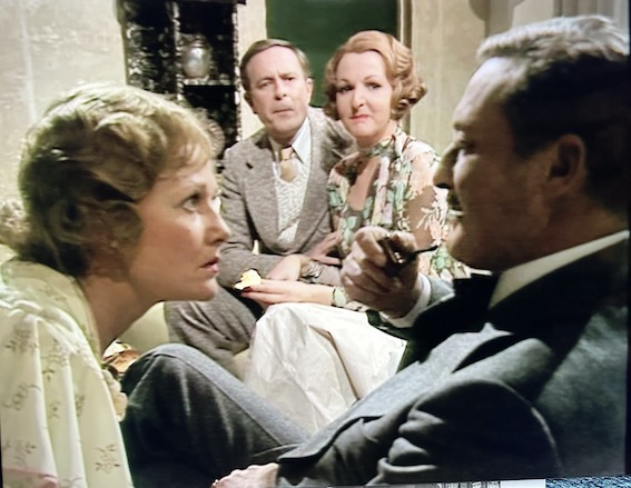 Again, TV allows another room, the bedroom. These BBC TV productions love the mirror shot, here where Elyot does Coward’s trademark ‘we are different to (i.e. better / cooler / more sophisticated than) normal people’ speech. I guess it’s the camera operator’s signature shot.