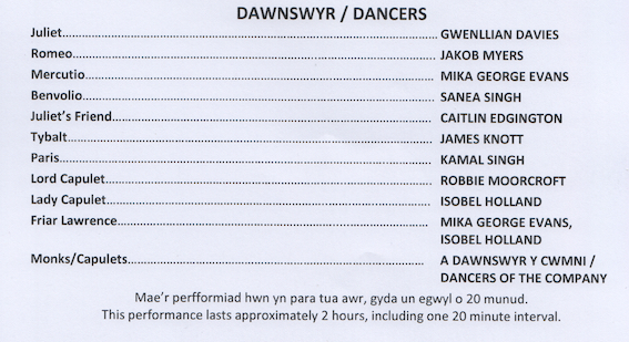 The projection is its major selling point. No, it’s not anywhere near as realistic as the poster image, but it shifts from abstract, to impressionistic (the church) and realistic. The scene where the nurse hands Romeo the letter from Juliet has a projected concrete pedestrian underpass, the sort you see in abandoned 1960s shopping centres. In fact, for a Welsh twist my last visit to Tredegar (my mum’s home town) came to mind where we watched schoolkids coming through the boarded up shopping centre and opined, they will be gone from here as soon as they leave school.