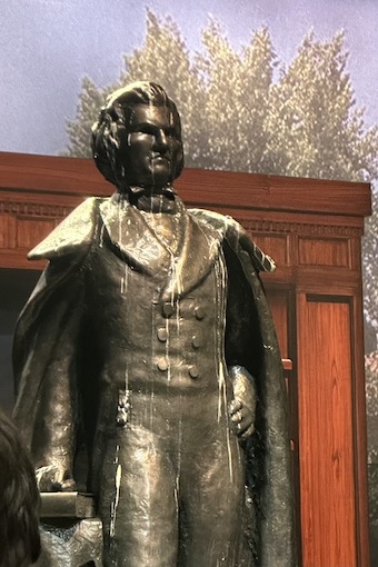 The first point is that the playwright also acts in his own play AND that he is a Yale graduate. It’s set in the American university, with a debate about statues and slavery. The play is inspired by real events at Yale in 2016 and 2017 when students protested about the name of their college. Calhoun College was named after Vice-President John C. Calhoun (in office 1825-1832). Calhoun was senator for South Carolina and served under John Quincy Adams until 1829 and Andrew Jackson 1829-1832. He was not just a slaveholder, but a vigorous and extreme defender of slavery, which he believed to be a positive good.