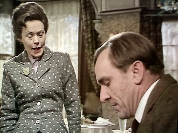 She turns up at the hotel where he has been conducting a quiet, secretive affair with the hotel manager, Miss Cooper. (Annette Crosbie … Mrs Meldrew in One Foot In The Grave, the housekeeper in Dr Finlays Casebook among many others.) Miss Cooper is the calm, kind voice of reason throughout.