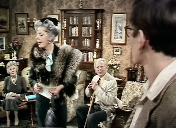 The thing that comes across most strongly is the Major’s punishment. He was bound over to keep the peace. Mrs Railton-Bell (Pauline Jameson) demands that he be expelled from the hotel and tries to work the other residents up.