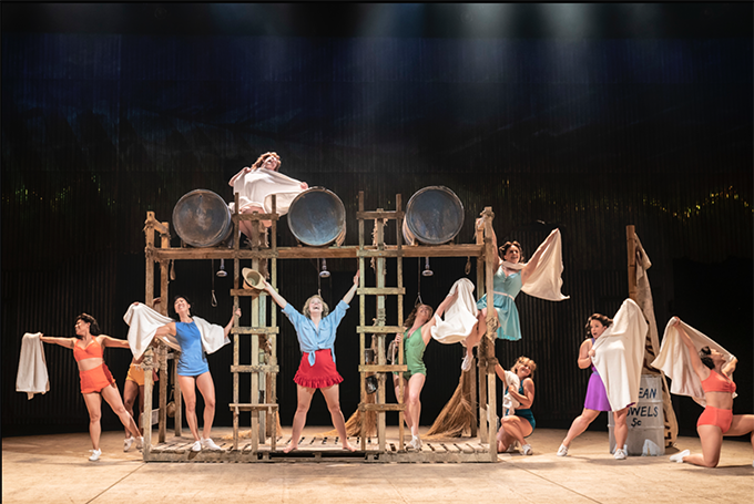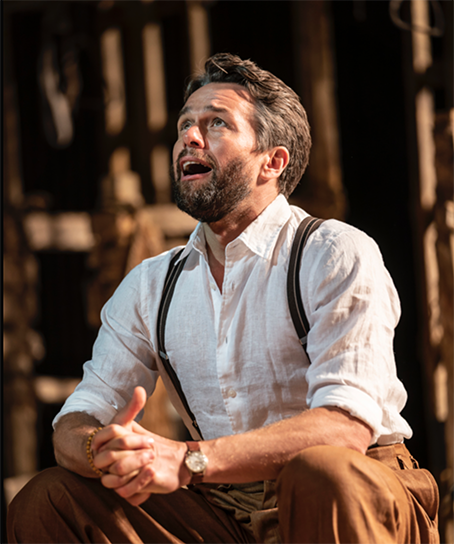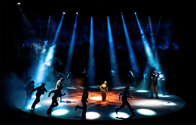 Chichester is three-quarters in the round, and for this they had a revolve stage, which they used a lot to great effect. The orchestra are hidden away above the stage. A cast of thirty-one on stage. They used a vast array of costumes, all clean and freshly pressed, meaning they have multiple sets, what with matinees.