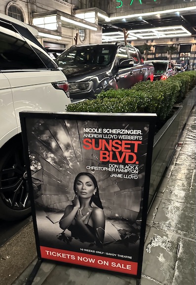 Infuriating. We booked because we read reviews of how startlingly different Nicole Scherzinger’s performance was. Just after the play started, five minutes in, like a modern TV series, they project film credits. WTF, her name isn’t up there. This Norma Desmond doesn’t look at all like her either. Get to the interval. If the programme hadn’t been red ink printed on black … why are West End programme designers totally ignorant of the basics of text design … we might have read it in the ten minutes of gloom before the play started. All theatres reserve the right to replace stars with understudies. Thats a given. They usually- well, every time ever before this – have notices in the lobby. We asked. Rachel Tucker is playing Norma Desmond. The programmes has two pages for Ms Scherzinger. One for Ms Tucker who is not an understudy., but an “alternative”. In tiny print it says ‘Guest starring on Monday evenings and select other performances.’ We assume that the famed Ms Scherzinger can’t be fucked to do matinees on two-show days, even when they’re fully-booked at swingeing prices. Or was she preparing to receive her Evening Standard Award 2023 (Best Actress). If Rachel Tucker (BTW, Rachel Tucker was totally brilliant … no blame on her) is indeed an alternative star, why isn’t her name and image on the posters?