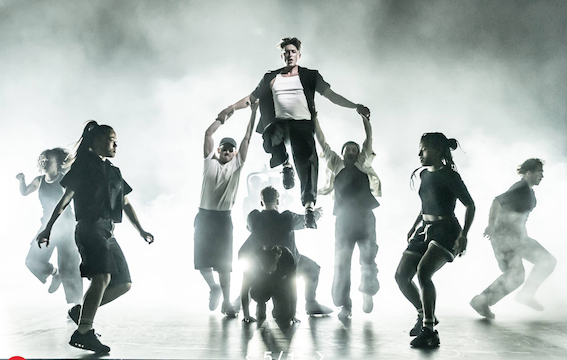 With its stark, prop-free design, its noirish black-and-white palette, its jagged, sinewy choreography and its inspired use of live video, it’s as dark and glittering as a black diamond, and as lean and lethal as a stiletto blade.