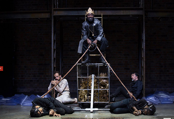 Boyd has cast Jude Owusu, and what’s interesting about the latter’s approach is his refusal to grand-stand. With his imposing gold breast-plate, Owusu has the plausible physicality the role requires but the braggart instinct sits beneath an air that’s deceptively benign. Owusu often smiles, stays calm, as if it were self-evident that those he challenges will fall under his sway. It’s a surprisingly modern reading. In its favour, it chimes with the aura of today’s strong-men such as Assad, who wears his menace in business-like blandness; and something of the sinisterly beaming jihadist terrorist lurks here too. Domenic Cavendish