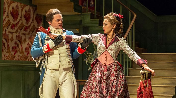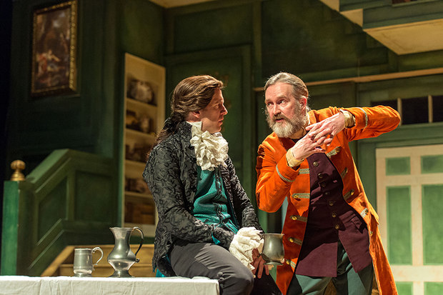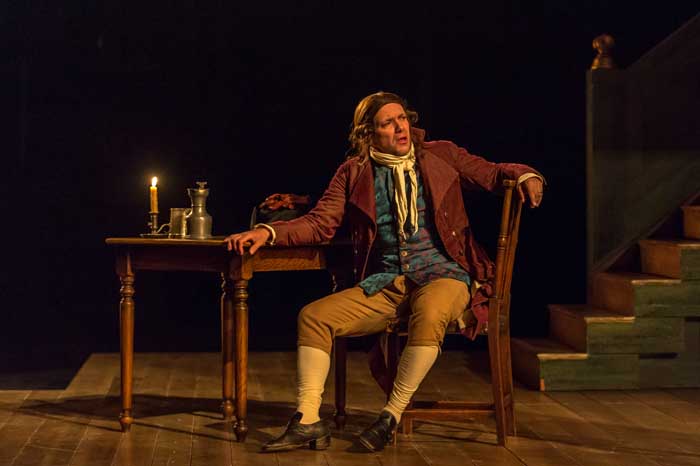 Pearce Quigley as Scrub, the Sullens’ butler, is simply the best comic servant you can put on a stage. His laconic delivery makes every line funny. It’s an important role in the play too, culminating in taking Mrs Sullen’s place hiding under the covers in bed when the highwayman arrives.