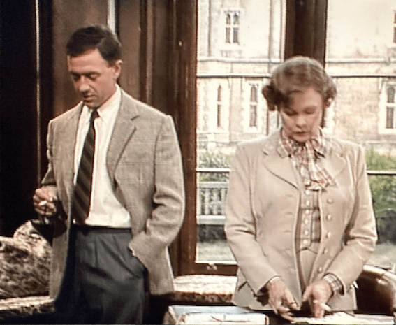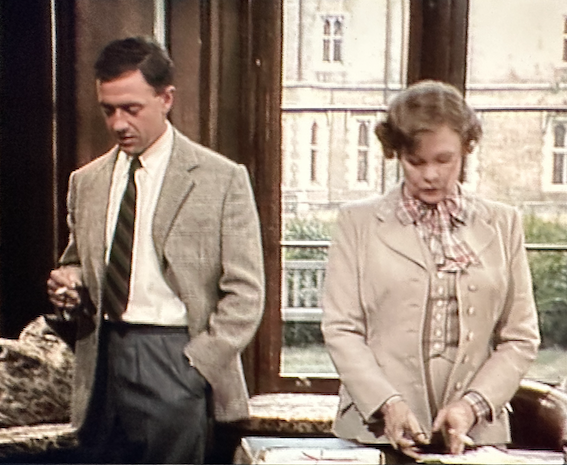 Mrs Croker-Harris (Judi Dench) arrives. She sends Taplow off to get her husband’s prescription in the village and gives him money for an ‘ice’ too. Her husband has heart problems, hence the early retirement from the public school. He is going to a less arduous role at a ‘crammer’ in Dorset. It starts icily. Hunter was invited to go to Lords with them but ‘forgot’ and went with the headmaster to a box instead. They had paid for his ticket too. (This may be why this TV version opens with a cricket scene). The conversation reveals that Hunter and Mrs C-H (or Millie) are having an affair. Hunter is invited to dinner that evening and they are planning to meet in the summer holidays in Bradford (Rattigan does have a sense of humour).