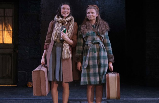 The book caused such a furore in Ireland in 1960, getting banned and burned in public. The revelations about Catholic education and general sexism and mysogony in Ireland since then leaves it looking quite mild and restrained, apart from the flogging. The 50s and 60s on stage are fascinating to those of us who remember them. Just the costumes (very good here) are a source of fascination. Twenty years ago, I used to notice the older audiences being equally fascinated by the 30s and 40s on stage. It’s in the detail … the two girls of the title, Kate and Baba have to go from early teen to young women, doing many of the costume changes on stage, in beautifully choreographed moves, where other characters sweep by, and deposit fresh clothes or pick up discarded ones. At the beginning of Act 2, they’re in the same clothes as the end of Act One, but have added lipstick and stockings with seams. That was a detail I heard people talking about at the end.