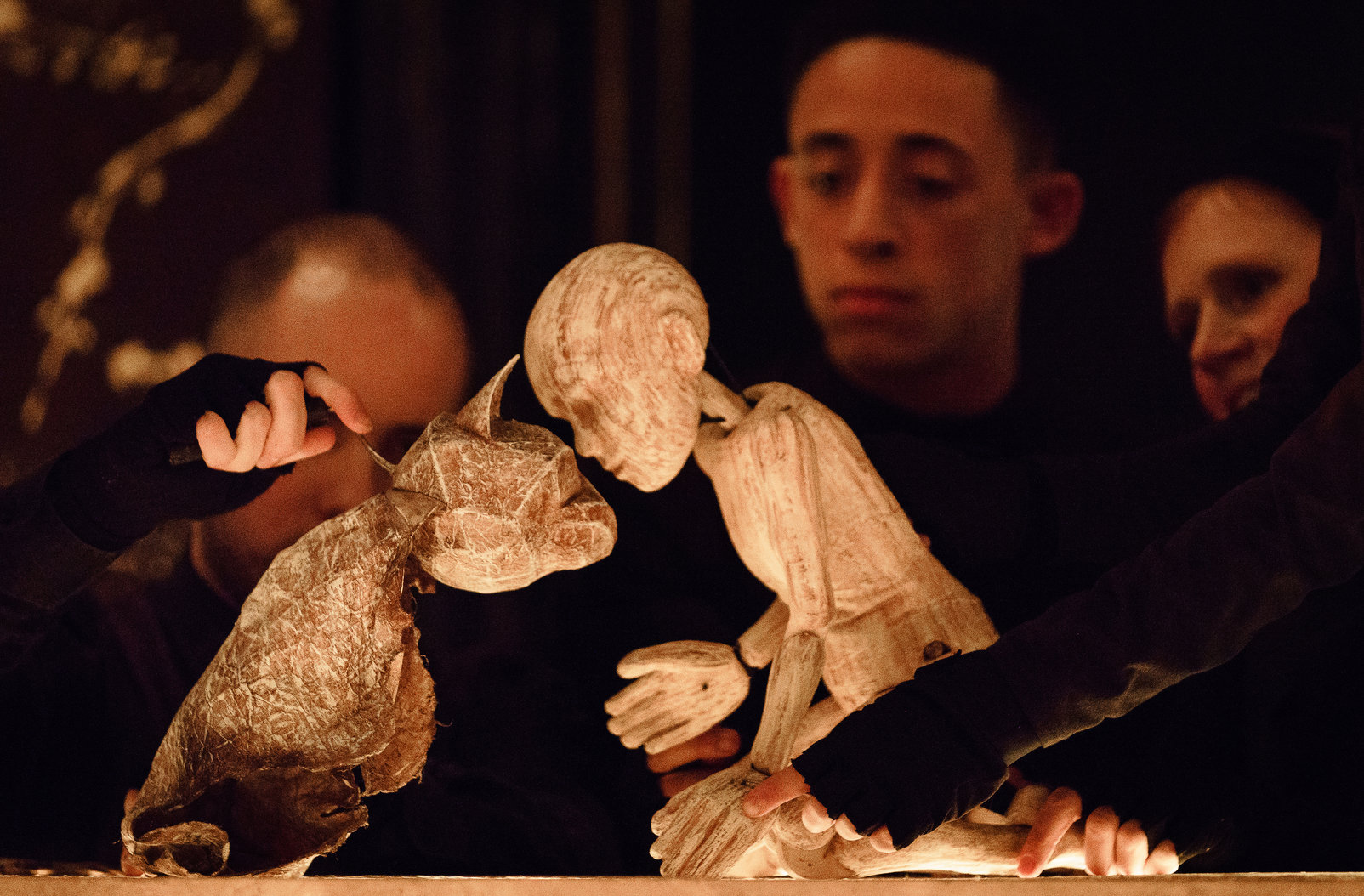 I’ve never seen anything quite like it, not could I have believed that such intense emotion could be conveyed by bare wooden puppets, without costume, hair, facial expression or even gender distinction. It’s a triumph of body language, animated by five puppeteers dressed in black, who also breathe loudly at times, sigh, briefly embrace.