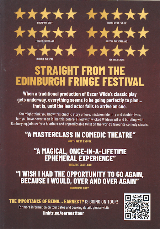 - Importance of Being Earnest 2014 by Oscar Wilde, West End & Tour, directed by Lucy Bailey