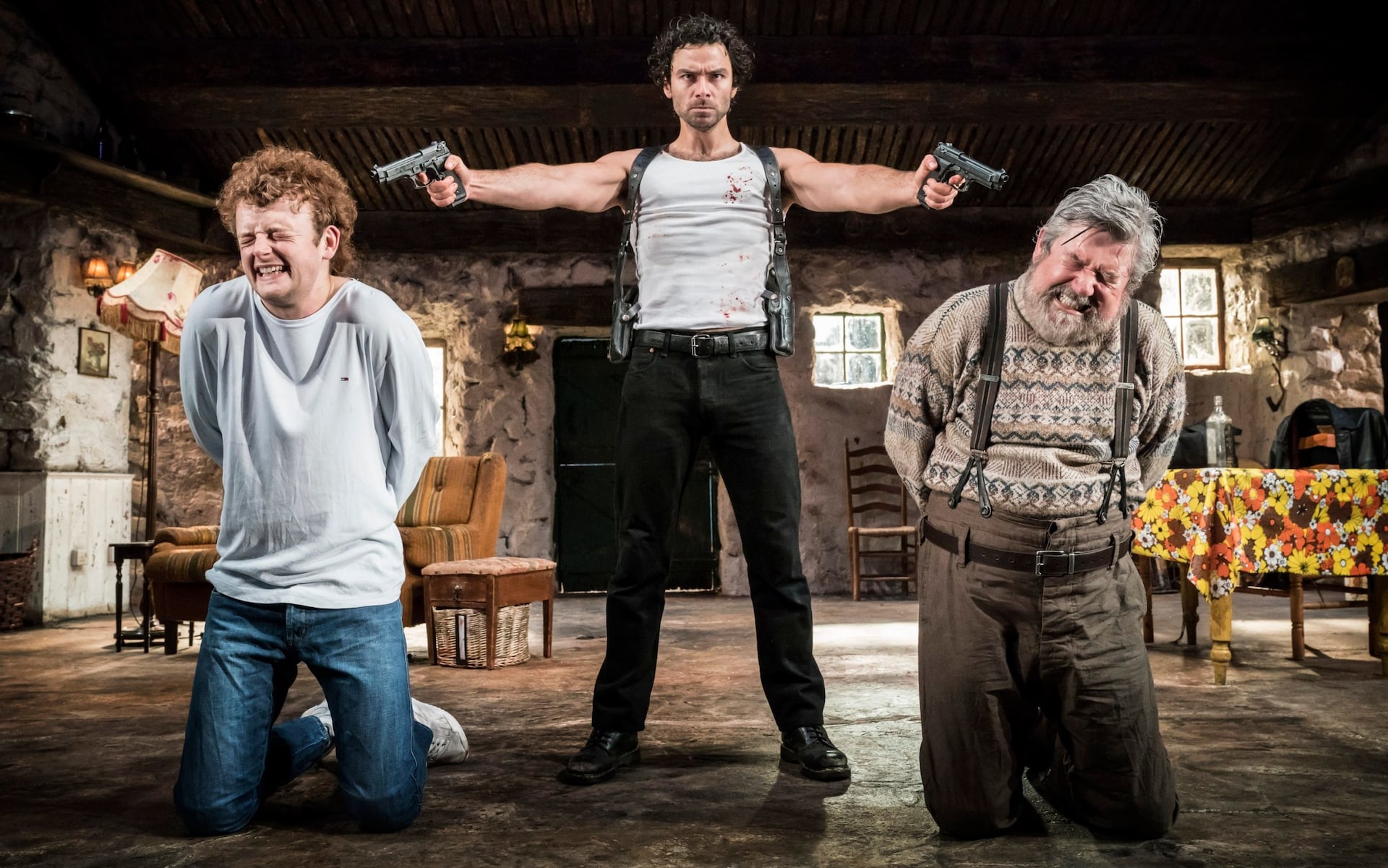 Davey and Donny desperately try to black up a ginger cat with boot polish to stand in for Wee Tommy, Padraig’s deceased moggy. What none of them know is that Padraig has fallen out with the INLA for trying to form a splinter group, and that the INLA gets its main finance from protecting drug dealers like James. They are annoyed, and three of them from Ulster are in Inishmore to sort out Padraig. No more plot spoilers. The rest of the play is spattered in blood and severed body parts. Will Padraig and Mairead find true love? Will Padraig execute his own father for feeding Tommy with Frosties? Who will be left standing?: