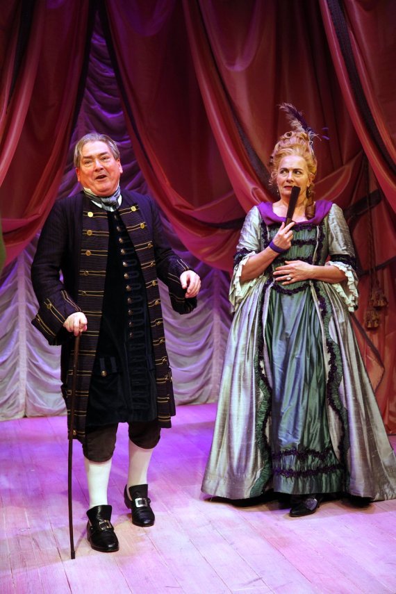 Sir Anthony Absolute (Michael Thomas), Mrs Malaprop (Julia St. John)