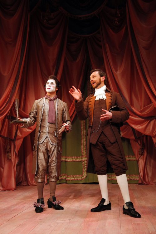 Bob Acres (Daniel Ableson) is dressed for Bath society. Sir Lucius O’Trigger (Christopher Logan)