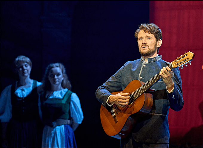 It’s an unusual musical. If we compare it with Rodgers & Hammerstein’s Oklahoma! the only dancing in Sound of Music is when the characters say there will be dancing, mainly from Maria or the kids, or the party ballroom dancing, or Liesl and Rolf dancing to Sixteen Going on Seventeen (one of the dance showpieces). In other words, there is no point where twenty dancers flood the stage and stun with acrobatic dancing and cartwheels. The story is unashamedly sentimental. It’s also heterosexual. No knowing winks among plaid shirted cowboys. There’s none of the high speed vigour that excites in Oklahoma! or in West Side Story. Yet this competes with West Side Story in popularity. They are the two most popular musicals of all. This afternoon the balconies at the Festival Theatre were full including to the very furthest side seats of the balconies, almost always vacant in an otherwise full house. This may give critics problems in judging it: