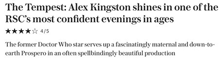 So what happened? It was our third RSC Tempest in ten years, and the weakest. Somehow, it refused to gel. You can always feel audience buzz, and there wasn’t any, though it got decent applause at the end, but no standing ovation, and the applause was very good, but was less than ecstatic.