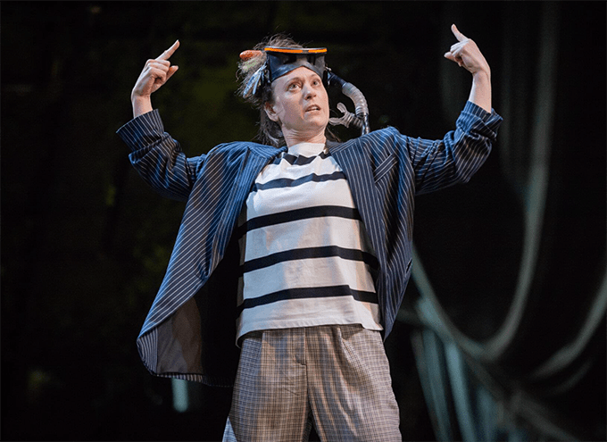 Caliban was poorly conceived. Tommy Simm’aan was fine in acting and delivery, though insufficiently simian. Caliban is enslaved, his mother is a witch of Algiers, so he is ethnically different, he’s distorted, ugly, a slavering would-be rapist. A normal handsome looking chap in a string vest and cloth knee pads doesn’t do the job. Past productions have brought out the early colonialism and enslavement themes in the play, which is much nearer the mark than climate change. Dare I say that works far better if you cast a BAME actor as Caliban? Taliban as Caliban? That would be way too non-PC. Also the RSC strictures from 2022 on only disabled actors playing disabled roles mean he can’t be hunchbacked, limping or ugly. Apparently he can’t slobber and fiddle with himself while looking at a terrified Miranda, who being empowered, can’t even look frightened of the man who’s tried to rape her. Plus he has been enslaved, his island robbed from him by the arriving Prospero. That doesn’t come to the forefront at all. It was a moment when I thought, ‘Have they understood the play at all?’