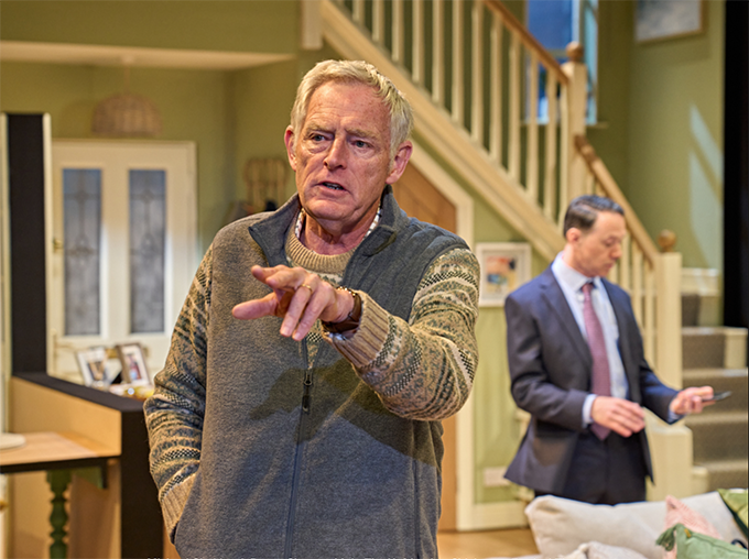 Rarely do you see a critical range from five stars to two stars, which this has attracted. The two reviews I always read first, The Guardian and Telegraph, agree on four stars. Domenic Cavendish, as our senior reviewer now, compares it to Max Frisch’s The Fire Raisers and Harold Pinter’s The Caretaker on the visitor who brings out issues and changes things. That’s astute, and I wish I’d thought of it, having done both plays in my time. Cavendish also suggests that Steven Moffat might be our new Ayckbourn. I’d agree too, on producing popular theatre that fills theatres and gets standing ovations. I thought Moffat had a more consistent and smoother grasp of comedy than Ayckbourn, though the play lacks the sudden theatrical flashes or unusual stagecraft that are Ayckbourn’s trademark. Also, this play will work on a proscenium stage just as well as on the Minerva’s three quarters in the round stage. It has flow.It has pace. It has comic timing, assisted by a perfect casting choice.