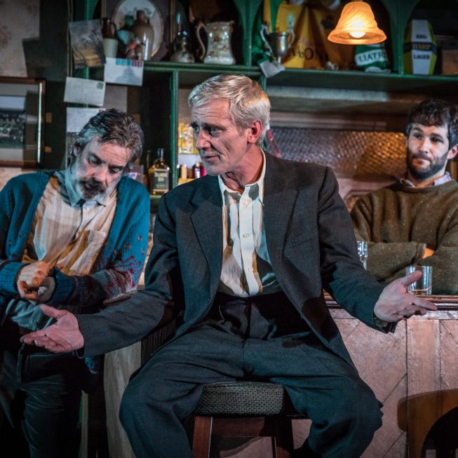Finbar turns up with Valerie in tow, there is quite a bit if humour when she asks for wine. This is a beer and whisky establishment. They start telling stories … this happens quite organically … and all the stories have a supernatural bent … fairies and ghosts. Jack starts it off with a story about a fairy road which happens to run through the house Valerie has moved to. Finbar takes over with a scarier story. The supernatural element is increasing. Then Jim tells a really creepy story … these are all from their experiences. Valerie tells a deeply disturbing extremely sad personal story that tops all of them. Then the last fifteen minutes or so (the play is 100 minutes, no interval) are something of a downbeat or soft ending, not any kind of climax. The centrepiece of the end section is a sad recollection from Jack, explaining why he is alone. The top of the trajectory of the play was reached with Valerie’s story.