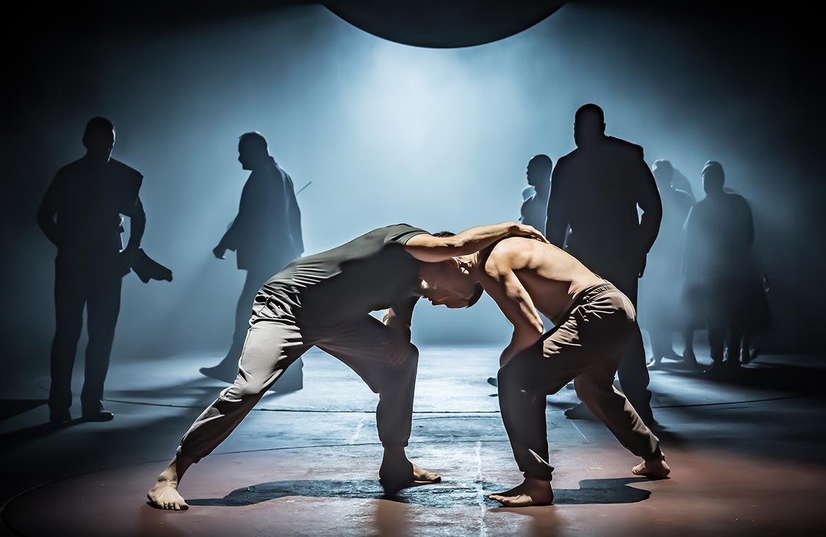 They open dramatically with Leontes, King of Sicilia, wrestling with his sweaty bare chested friend, Polixenes, King of Bohemia. It’s all slightly homoerotic in their relationship.